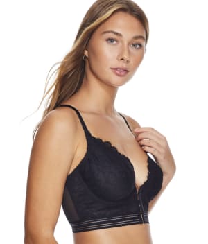 - Feel great in this front-close longline style bralette