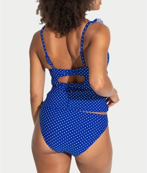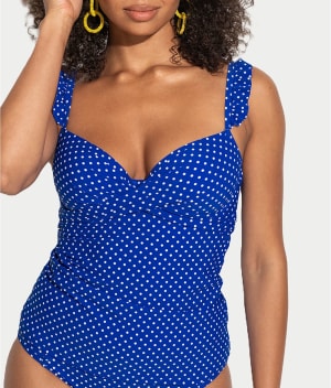 - Lounge on the beach in this polka dot tankini top
