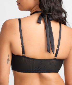- Darted seamed cups with fishnet detail & micro cup overlay