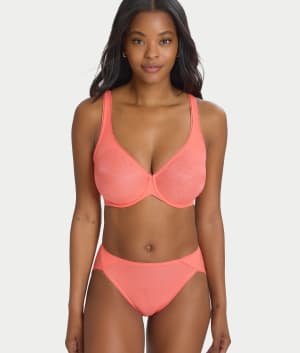 • Hi-cut, modest rise bikini with sheer fabric