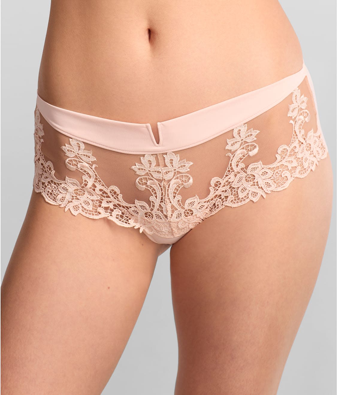 • Sleek, stretch microfiber and tulle with cotton gusset