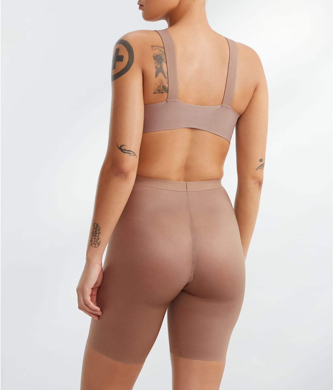 - Mid-thigh coverage for a smoothing, chafe-free effect