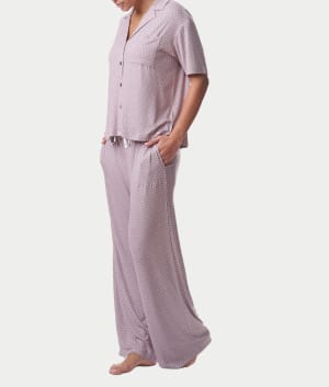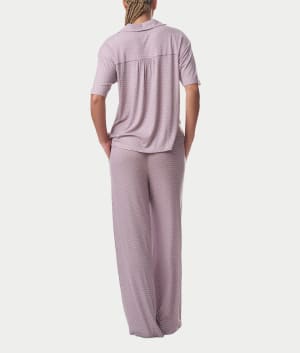 • Elastic drawstring waistband on wide leg pants with side pockets
