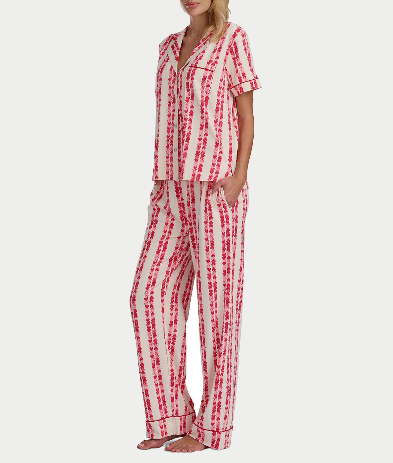 • Relax for your nighttime routine in this heart themed pajama set