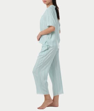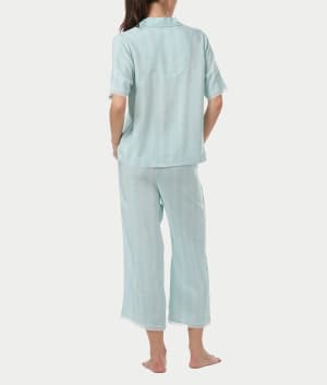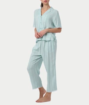Notch Collar Woven Capri Pajama Set Color