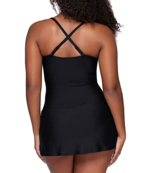 - Look your best in this feminine skirted swim dress