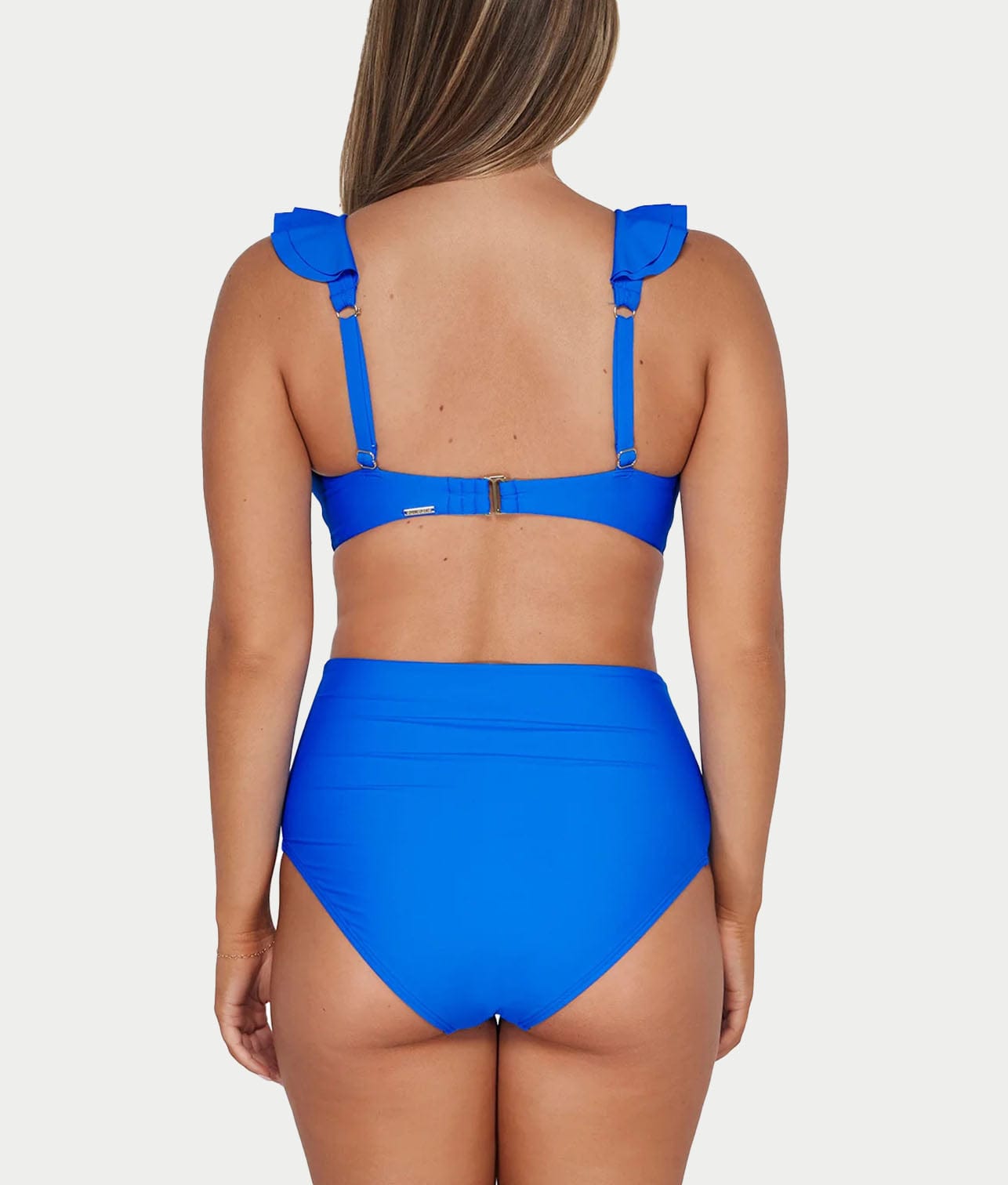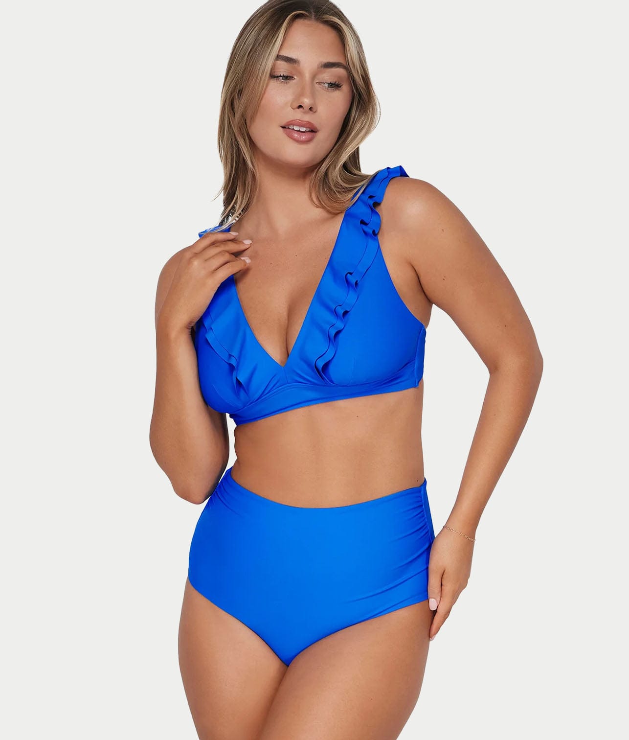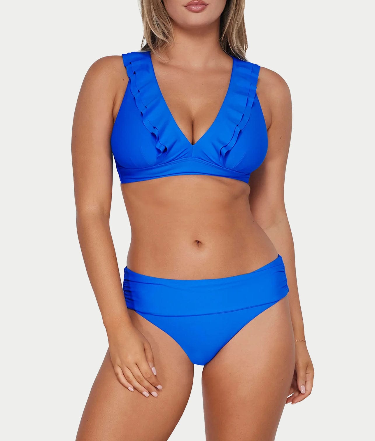 • High-waist with shirred sides for a flattering full coverage fit