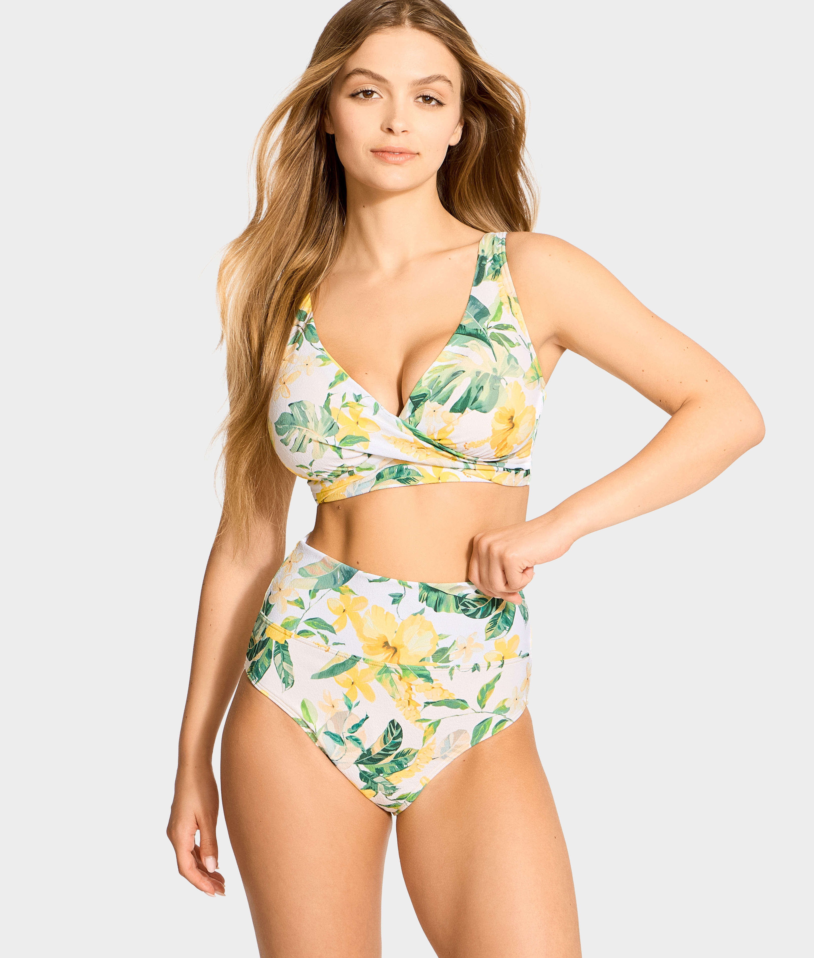 • Sunbathe in this trendy wrap-front bikini top