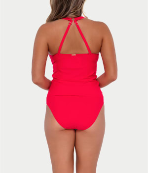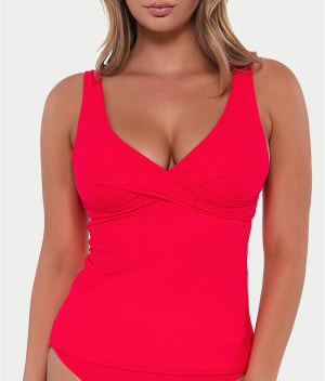 - Sunbathe in this chic wrap-front tankini top