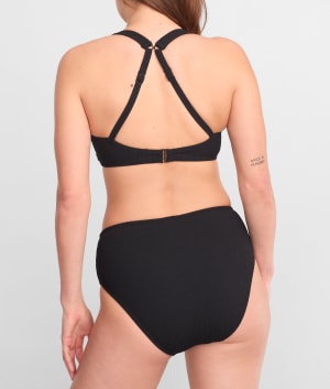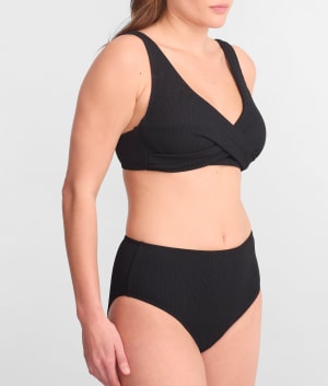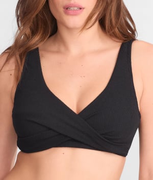 • Feel your best at the shore in this ribbed V-neck bikini top