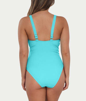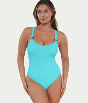 • Flattering scoop neck ribbed one-piece will turn heads on the sand