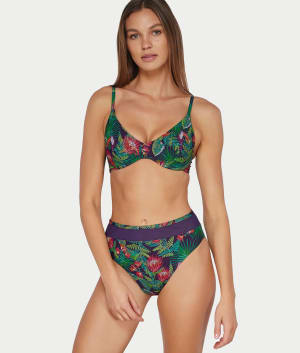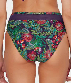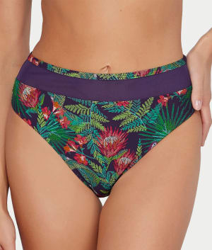 • Printed high-waist swim bottom with chic mesh trim
