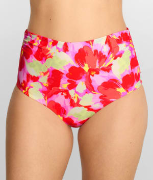 - High-waist with shirred sides for a flattering full coverage fit