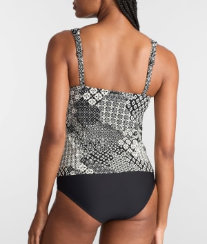 Body: 87% Recycled Nylon, 13% Spandex. Lining: 88% Polyester, 12% Spandex. Ribbed Fabric: 92% Nylon, 8% Spandex