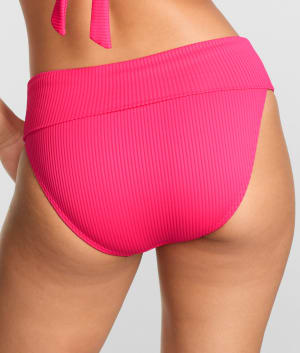 Printed Fold-Over High-Waist Bikini Bottom Color