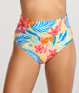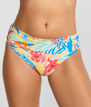 Printed Fold-Over High-Waist Bikini Bottom Size