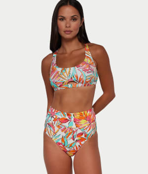 Body: 87% Recycled Nylon, 13% Spandex. Lining: 88% Polyester, 12% Spandex. Ribbed Fabric: 92% Nylon, 8% Spandex.