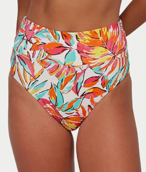 Printed Fold-Over High-Waist Bikini Bottom Size