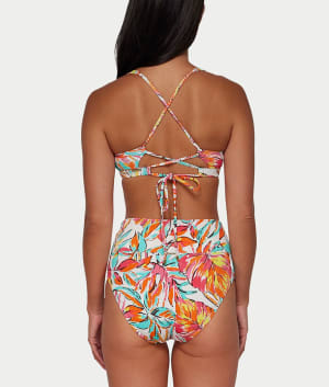Printed Fold-Over High-Waist Bikini Bottom Color