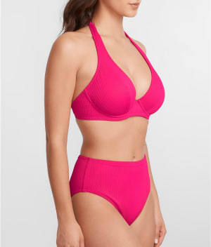 Prints: 87% Recycled Nylon, 13% Spandex. Lining: 88% Polyester, 12% Spandex. Begonia Ribbed Fabric: 92% Nylon, 8% Spandex.