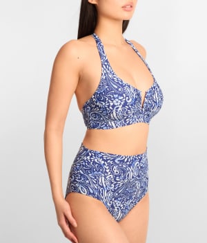 • Feel playful at the pool in this printed bikini top with a V-wire