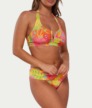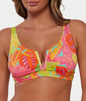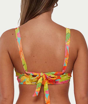 • Feel playful at the pool in this printed bikini top with a V-wire