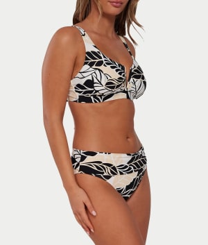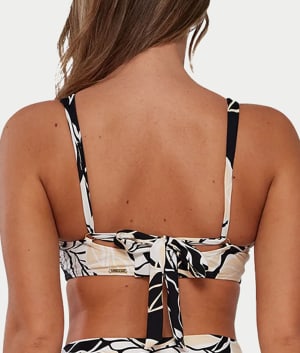 • Feel playful at the pool in this printed bikini top with a V-wire