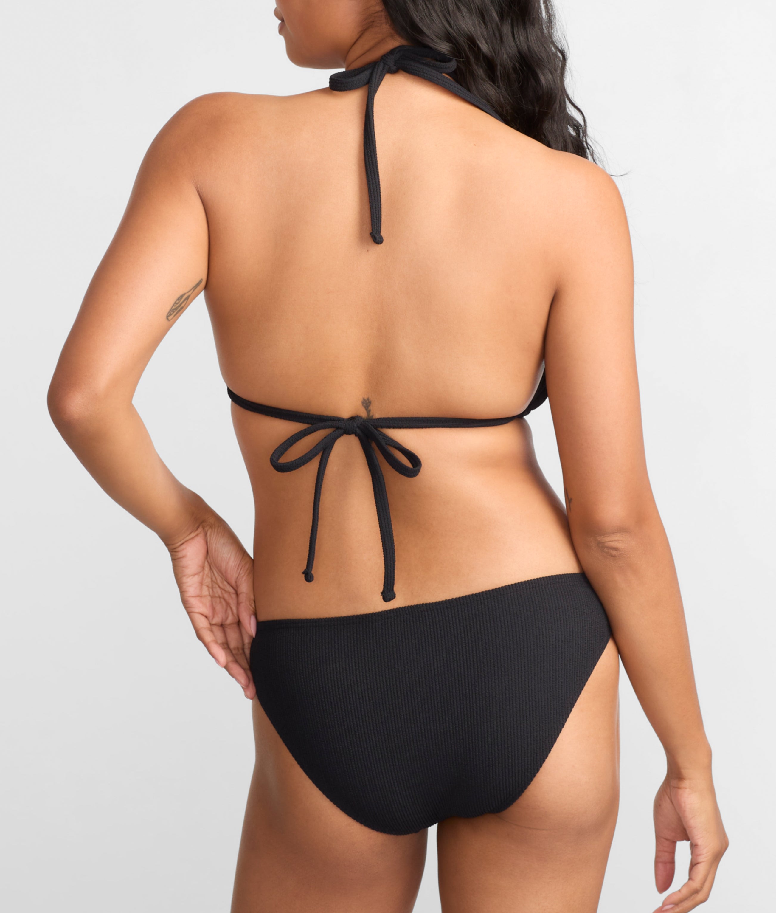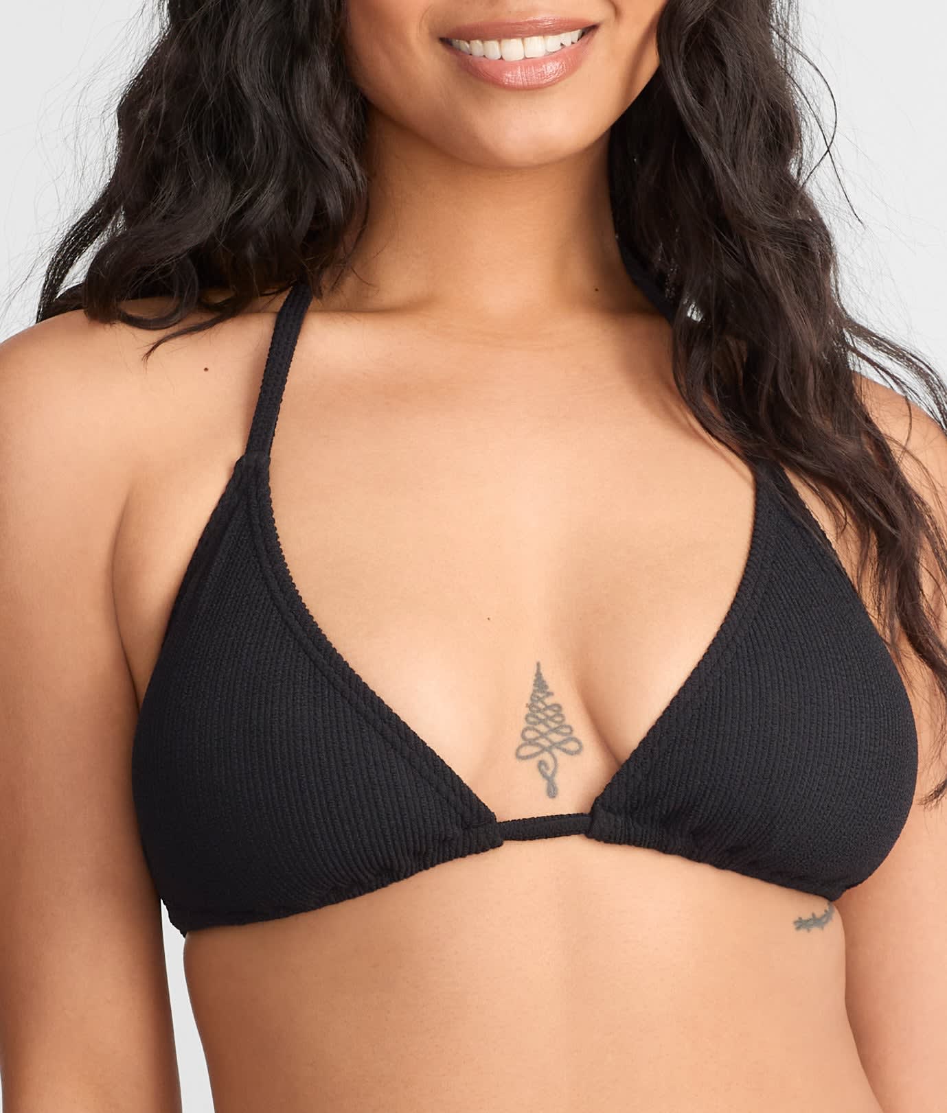 - Plunging textured halter bikini top offers a timeless look