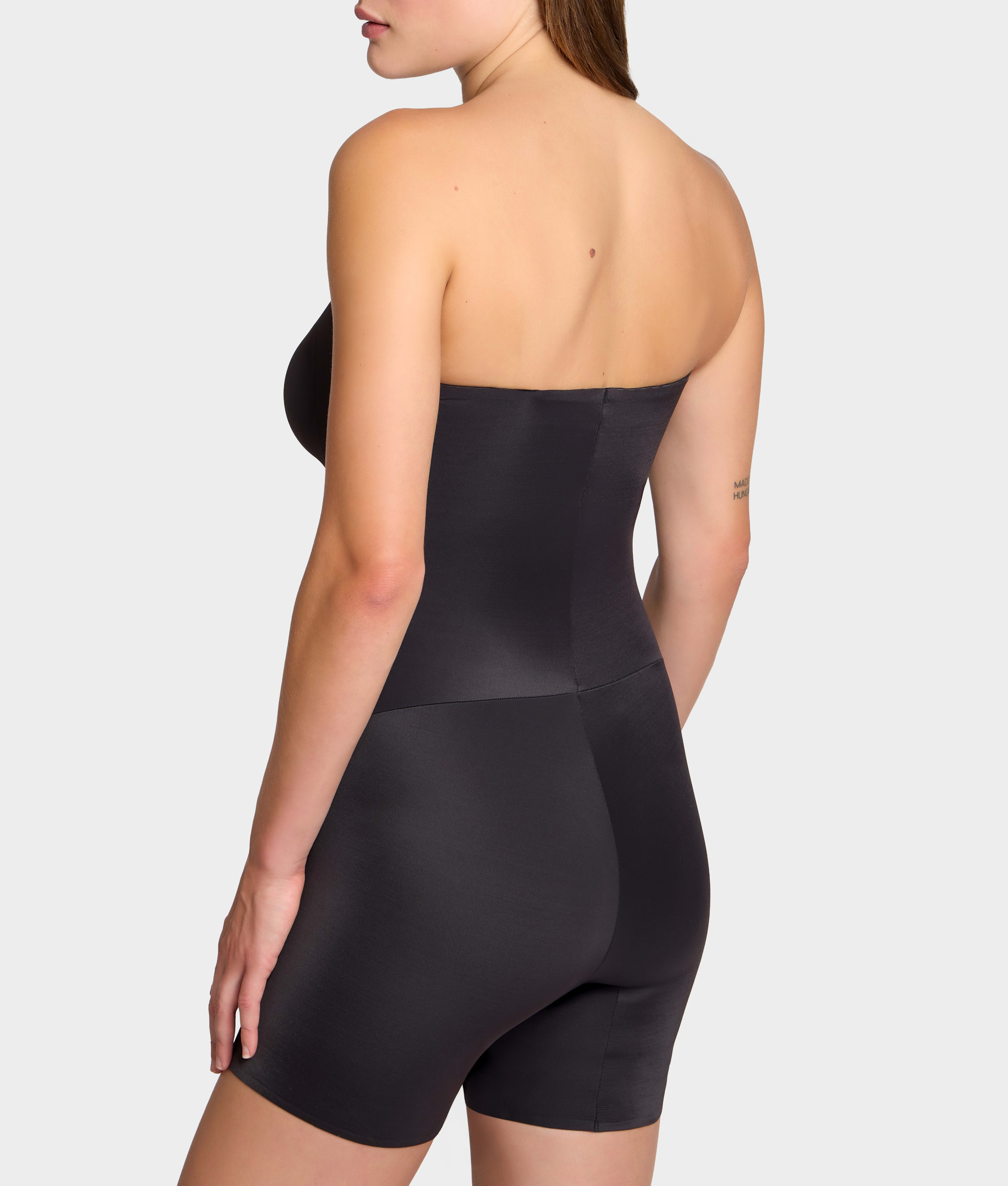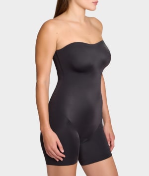 - Show off your silhouette in this one-piece, all-over strapless body shaper