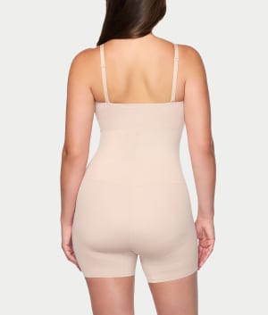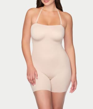 - Show off your silhouette in this one-piece, all-over strapless body shaper