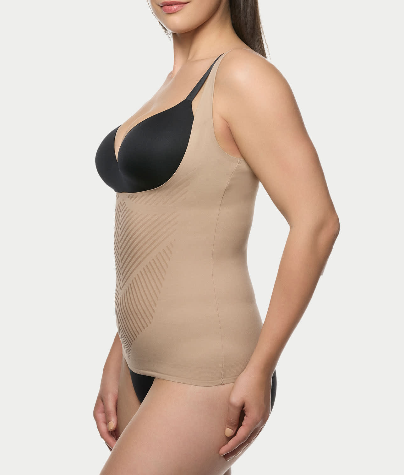 • Open-bust allows you to wear your own favorite bra for a custom fit