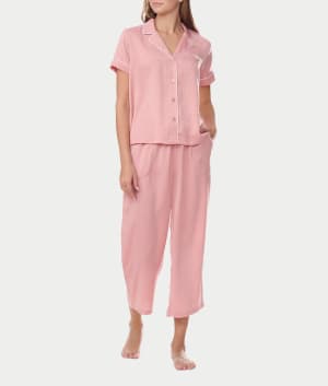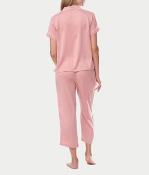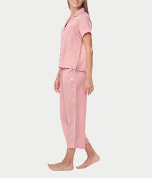 Notch Collar Cropped Woven Pajama Set Color