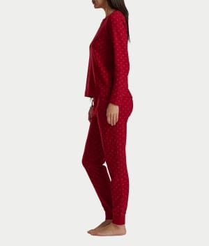• Get cozy in this soft printed thermal knit pajama set