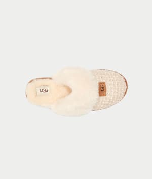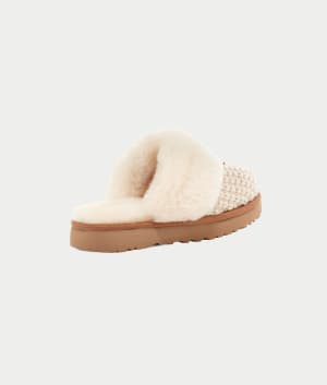 - Cozy slipper with a sweater knit fabric across the outside