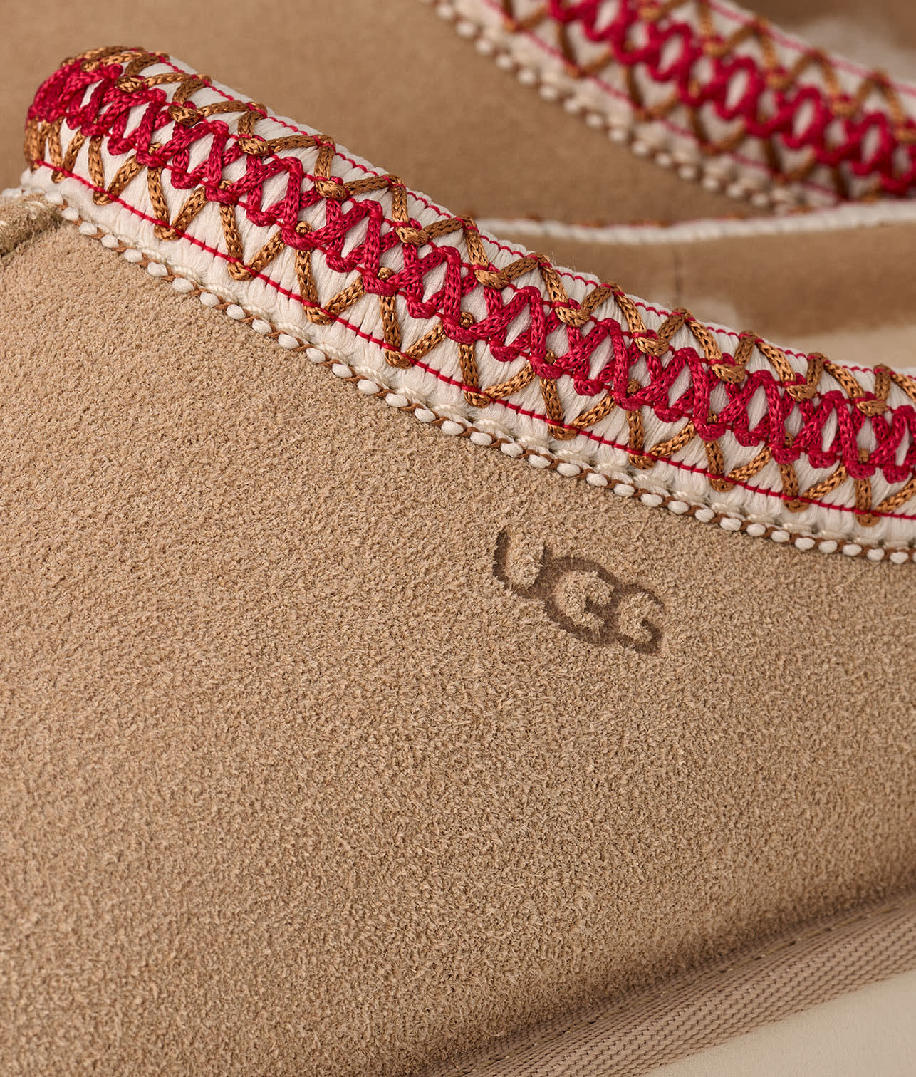 • Sheepskin lining with contrasting woven braid trim