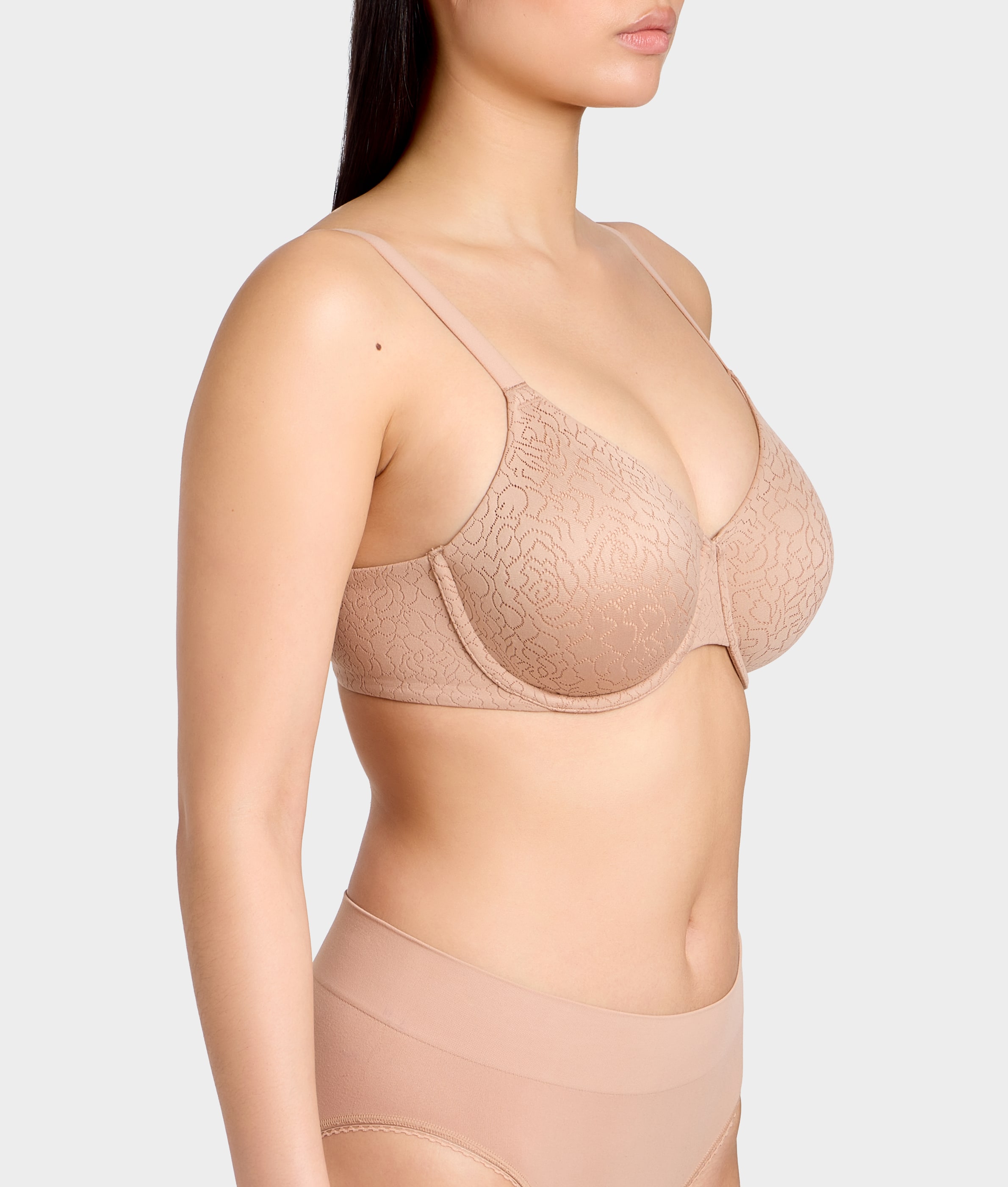 - Seamless bra designed to center your bust within your frame