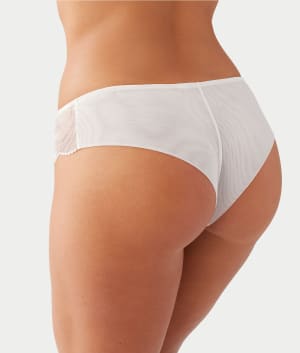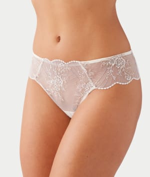 - Low rise with embroidered front and scalloped edges