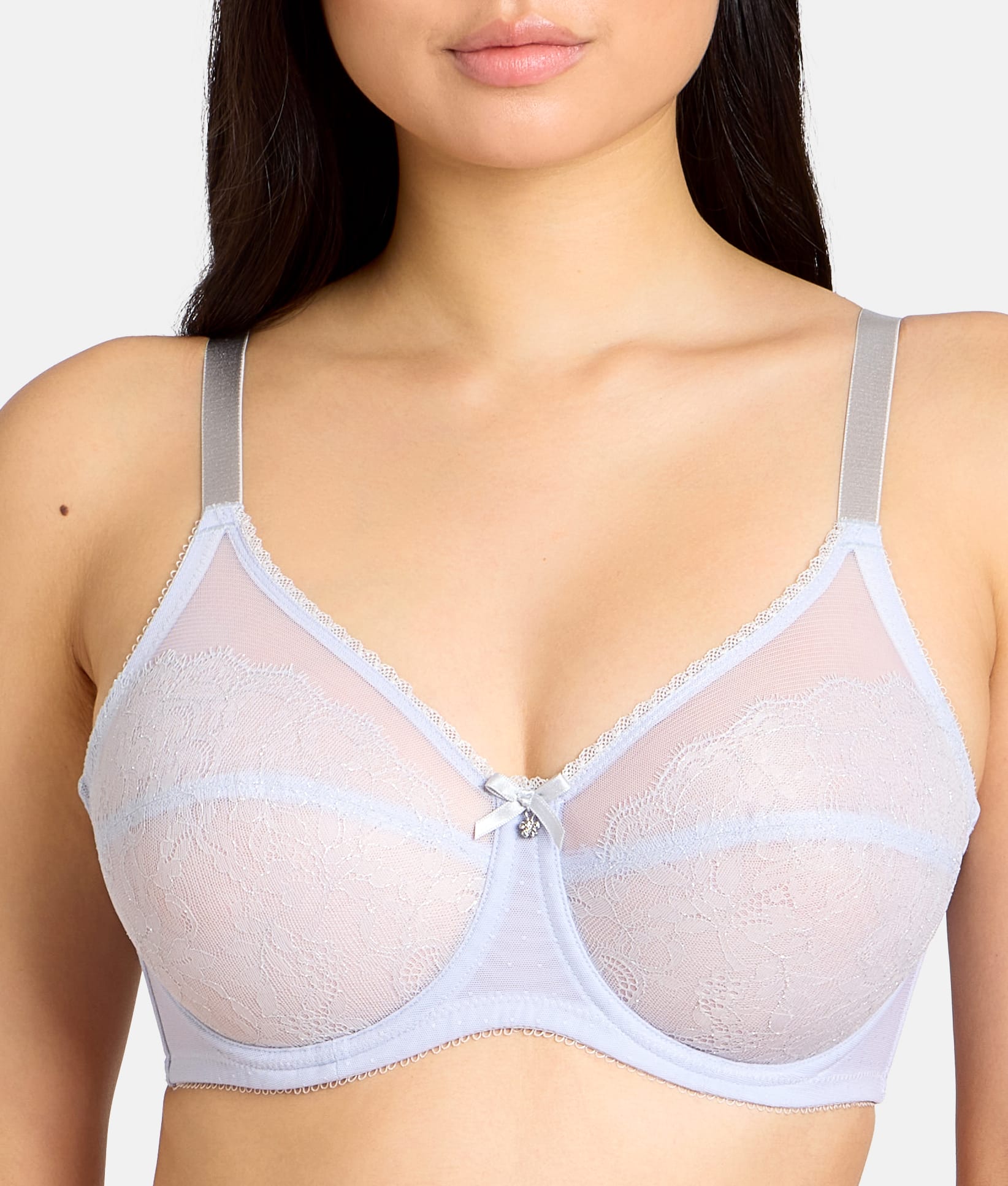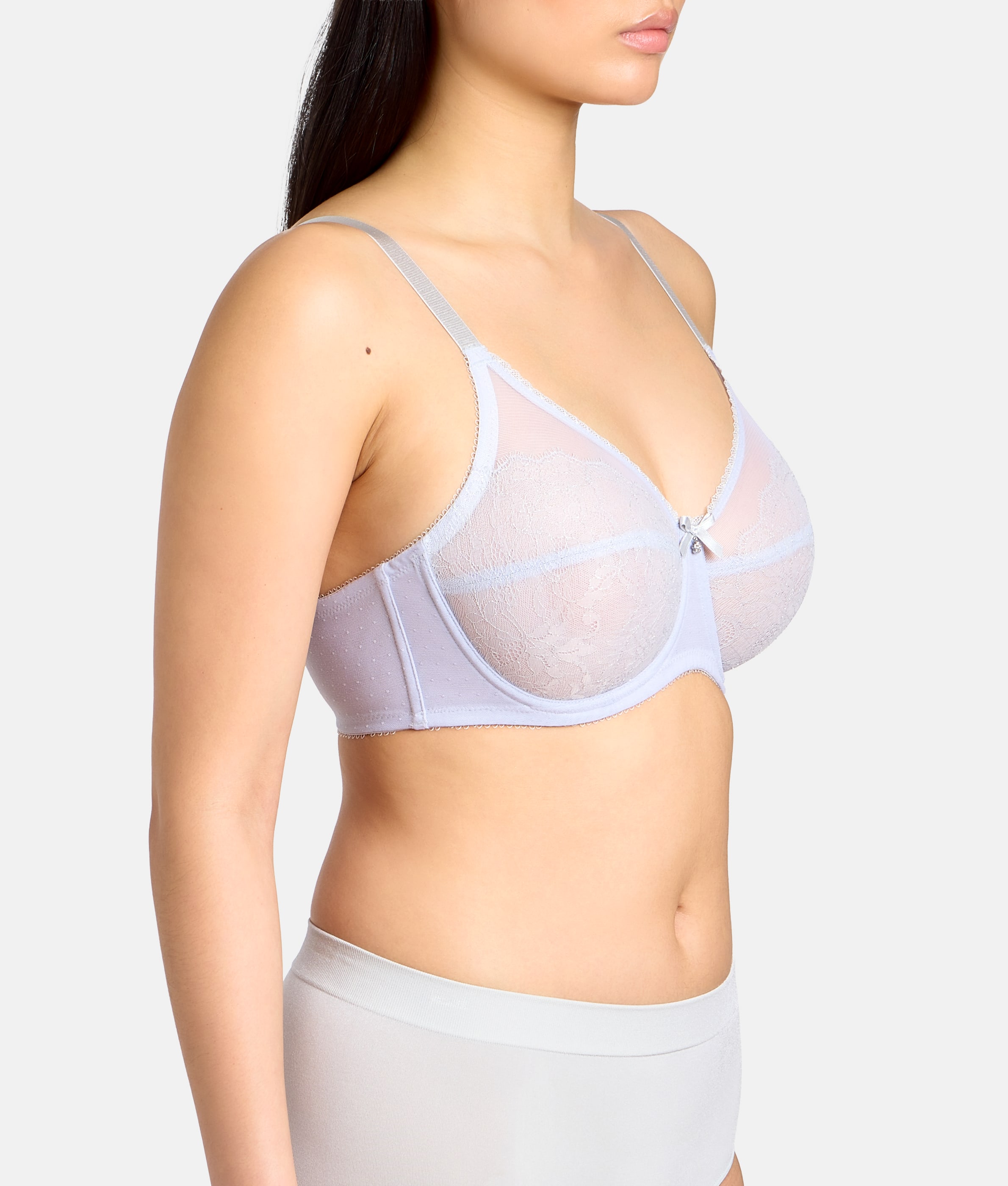 - Semi-sheer Chantilly lace and stretch mesh