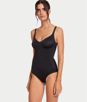 - Seamless bodysuit that sculpts the tummy, waist & hips